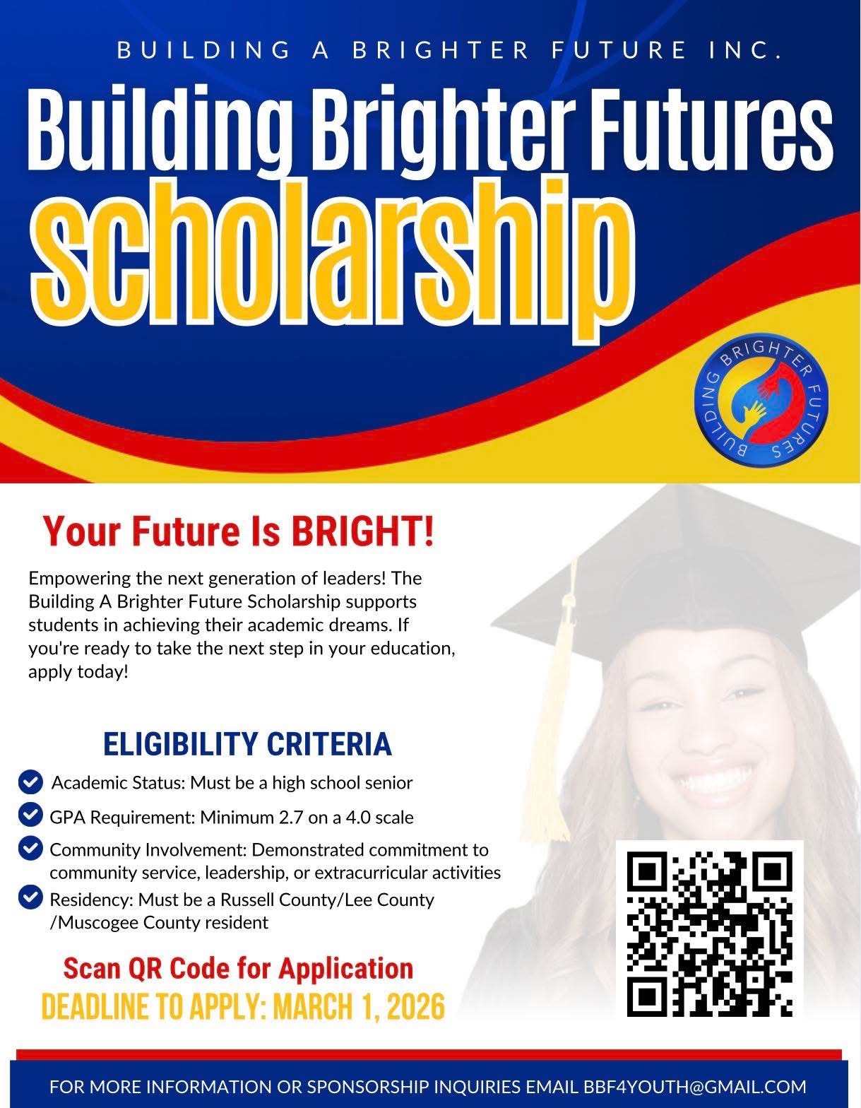 Information for this scholarship can be found below. Scan the QR Code or go to https://tinyurl.com/585m8exp to access the scholarship packet. The submission deadline is February 7, 2026 and 11:59pm.