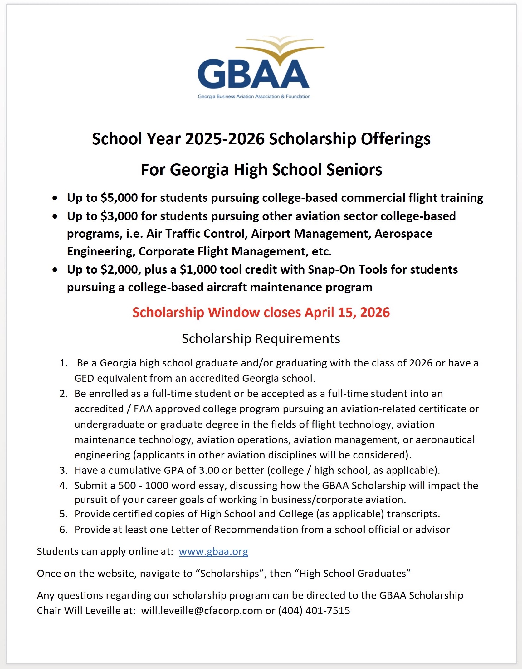 Georgia Business Aviation Association (GBAA) Scholarship