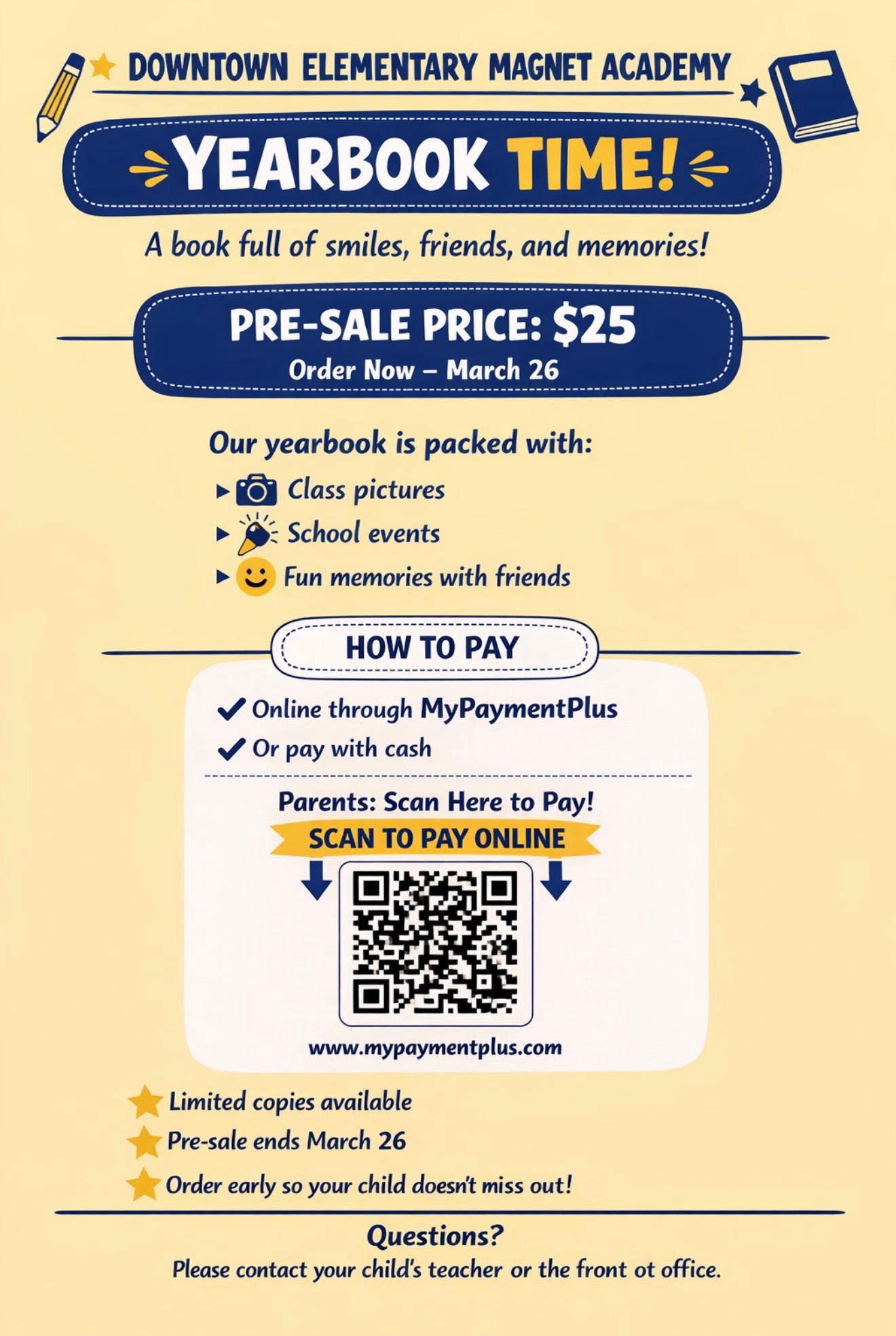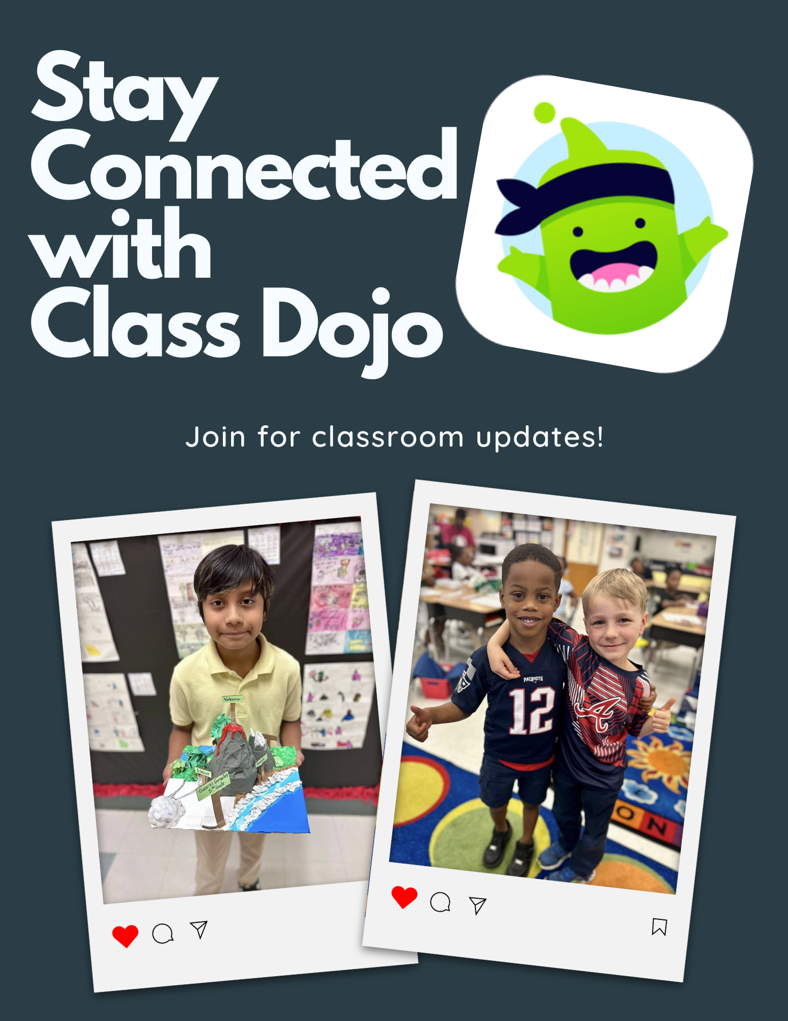 We are committed to keeping our families informed about the latest news and upcoming events. For classroom updates, please join your teacher’s ClassDojo. For school-wide updates, regularly check our website and Facebook page, where you’ll find information about special events and important announcements.