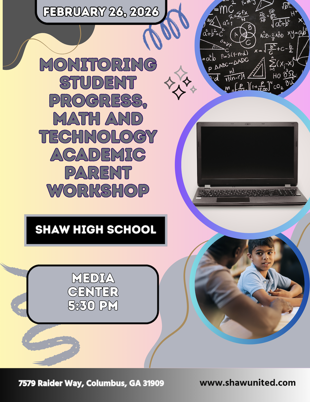 - Monitoring Student Progress Parent Workshop @5:30 (Media Center)